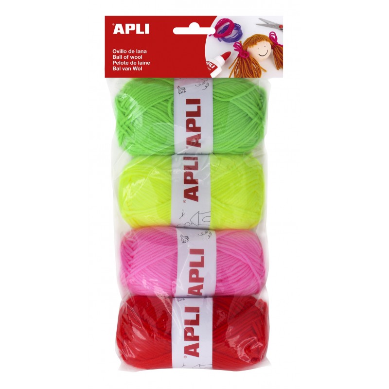 Pack de 4 ovillos de lana 100% acrílica. Cada pack contiene 4 ovillos de diferentes colores. Lana 100% acrílica.